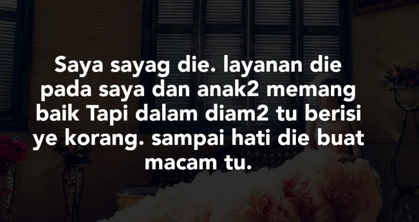 Rmai pmpuan die chat. Saya rply chat tu smua ckp yg suami saya da kwen n ade ank..trus pmpuan2 tu smua block suami saya. ade jugak yg ckp “smpai hati awk tipu saya” Hant kau tau hant!!! Suami mntk peluang lg..saya smpai da taktau nk ckp ape.saya fkir ank2 je..nk pisah pun saya fkir fmly saya bkn org snang..saya takde duit smpanan 1sen pun kalau nk truskan hdup dgn ank2.saya takpndai drive..kirenye hdup saya brgantung pada suami je..