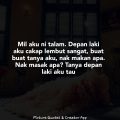 Sekarang hati aku dah tawar min bila aku dah buat kputusan nak pisah dengan dia hbis smua adik brdik dia msuk cmpur.. mcam2 diorg kta kt aku min siap ckap mna tggungjwab aku sbgai srang isteri bla suami ksusahan? diorg takthu ujg pgkal rmhtgga aku.. sdp ja drang mngata aku.. tapi aku nakad kali ni nak pisah dengan dia..laki aku pnya mngamuk maki2 aku.. masa ni aku dah blik rumah ayah aku.. n mak aku bru ja mniggal 2mggu.. sdih aku min.. dia siap perli aku dulu dia bnyak duit aku sayang dia.. bla dia ssah aku nak tggalkan dia ko rasa min aku tolong dia rosek tong2 sampah cri barang trpakai untuk bli barang rumah tu senang ka hidup kmi masa tu min.. allahhu.. gamak dia ckap mcm tu kat aku.. siap perli aku dia ckap dia doakan aku jmpa laki yang boleh bhgiakan aku n bagi duit bnyak2 kat aku.. geram buatul aku rsa.. aku mud lgi min baru 25 thun..
