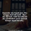 Dgn dia pon suka buat hal sendiri. Aku takde tempat nk berkasih sayang walaupun aku ad suami. Suami aku balik kerja mengadap hp. Bangun tidur hp. Aku sunyi. Tapi belom pernah terdetik nk curang cari teman geli geli. Sebab aku sekarang makin meluat dan bertambah geli dgn lelaki. Aku tak pernah minta pape selama dgn dia. Aku dpt balik kampung. Aku kerja cari duit aku dgn anak2. Aku minta zakat untk anak2 aku. Tapi aku masih dipandang keji dan hina.