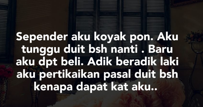 Family dia plk bising2. Laki aku jarang bagi nafkah kt aku. Aku cuma mnx ckup la untk makan mnum anak2 sebulan. Kiteorg skit pon tak demand soal makan. Janji perut terisi dh memadai. Kadang klau tengok gaji dia lebih. Aku minta duit rm50 je. Tu pon kadang dapat kt laki aku semula. Aku dpt duit zakat banyk pon . Aku bagi juga sikit kt laki aku. Tapi aku juga yg dihina difitnah kawan2 dia. Dia sikit pon bela.. siap kawan2 dia cakap. Dorg lebih kenal laki aku. Tapi hakikatnya. Aku lebih tahu.. aku diam. Sebab aib suami aku. Tapi dorg melampau hina aku. Canang cerita aku.