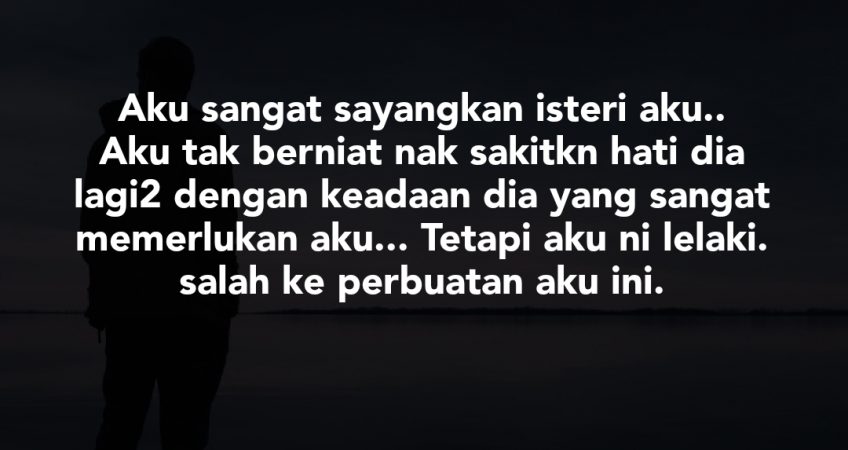 Salam admin tolong hidekan profile aku… Aku menceritakn kisah orang lain. Aku ada ternampak post dlm krt bercerita pasal suami dia mnghidap stroke dan isteri tak dapat nafkah batin selama 3 tahun. Kisah ini lebih kurang dengan kisah aku. Terbalik dengan aku, aku lelaki berusia 38 tahun, seorang suami dan seorang ayah kepada 2 anak lelaki dan 1 perempuan.. Dua sudah berumah tangga (21tahun dan 20tahun) aku kawen awal dulu. Isteri aku sekarang ni menghidap kanser tahap 4…