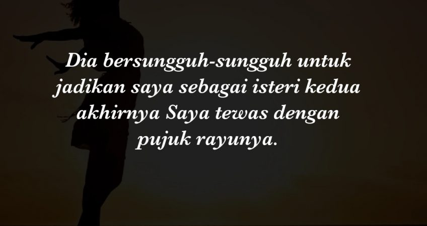 Saya rasa sungguh tertipu. Saya buat keputusan untuk move on. Tapi sebaliknya, ali datang merayu-rayu pada saya yang dia benar-benar sayangkan saya, cintakan saya. Dia bersungguh-sungguh untuk jadikan saya sebagai isteri kedua akhirnya Saya tewas dengan pujuk rayunya. Saya teruskan hubungan dengan dia.