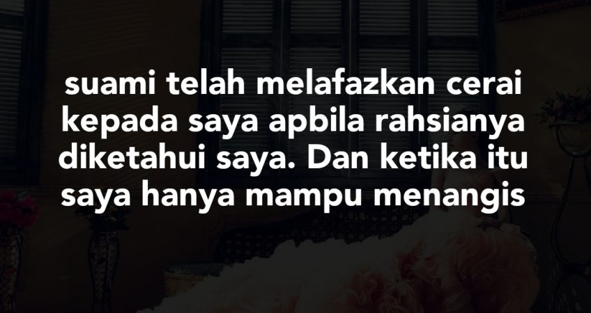 Tetapi tanpa saya duga suami membuat pengakuan bahawa wanita itu tlh dinikahinya beberapa bulan yang lalu serta mereka mempunyai seorang anak luar nikah. Ketika itu saya merasakan dunia saya hancur dan gelap. Saya tidak menyangka lelaki yang saya percaya selama ini sanggup memperlakukan saya dengan kejam dan membalas jasa2 saya sebegini. Dan yang lebih memeritkn suami telah melafazkan cerai kepada saya apbila rahsianya diketahui saya. Dan ketika itu saya hanya mampu menangis.