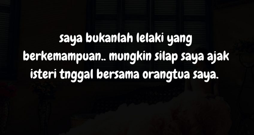 Sebelum ada nya isteri di rumah mak, rumah ni tak pernah bersih… tapi lepas ada isteri di rumah bersih habis rumah ni, saya ada sorang adik pmpuan.. besar dah, nak kawin dah pun… tapi pemalasnya hanya Allah saja yang tau, yang tu mak tak pernah pun nak kondem. saya kesian isteri saya min, saya dah sedaya upaya jaga hati dan perasaannya, tapi saya silap dalam saya tak sedar dia makan hati dengan mak saya sendiri.. tapi dia sikit pun tak pernah bersuara pada mak, walau sesakit apa pun yang dia rasa. sabarnya isteri saya, semoga Allah sentiasa melindungimu isteriku. maafkan abang kerana tdak mnjaga perasaan syang baik2.. Minta jasa baik kawan2 yang ada dlm ni, yang mna tau ada rumah sewa bajet area sungai petani.. tinggalkan komen anda diruang komen. trima kasih