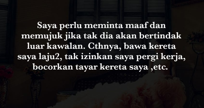 Dijadikan cerita, minggu lepas saya terjumpa hp dalam beg laptop suami (sblm ni hp suami rosak). Saya buka dan baca semua whatsapp dengan prmpn lain. Siap bervideo call dan bersayag2. Alasan suami melayan pmp lain sebab saya sibuk berbisnes online. Saya tiada masa melayan dia. Bila saya bersuara dan ajak berbincang, nanti berakhir dengan pergaduhan. Jadi segala perkara salah yg suami lakukan saya tak blh tegur. Cuma mendiamkan diri dan menahan perasaan. Sebab bila kami bergaduh, dia akan paksa saya utk ikut cakap dia. Saya perlu meminta maaf dan memujuk jika tak dia akan bertindak luar kawalan. Cthnya, bawa kereta saya laju2, tak izinkan saya pergi kerja, bocorkan tayar kereta saya ,etc.