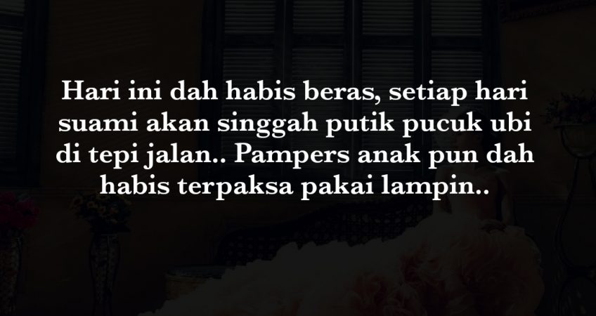 Dan apabila belanja dah habis suami saya yang akan pinjam duit dengan bos.. Dorang ada beli barang tapi beli sikit sja tak smpai harga 50 ringgit.. Tapi makan sekali dengan kami.. Sekarang dorang dah pindah dan langsung tak bagi tau saya dan suami.. Mereka angkut barang pada tengah2 malam.. Beras yang suami beli dorang ambil dan tinggalkan sedikit ja.. Hari ini dah habis beras, setiap hari suami akan singgah putik pucuk ubi di tepi jalan.. Pampers anak pun dah habis terpaksa pakai lampin.. Ricecooker kami pun dorang rosakkan.. Saya dah call bagi tahu ibu bapa saya yang adik saya sudah tidak tinggal dengan kami lagi.. Doakan keluarga saya murah rezeki Amen.